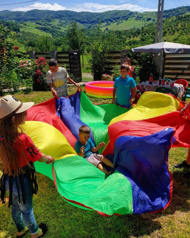 - Jocuri pe muzica sau dansuri cu copiii